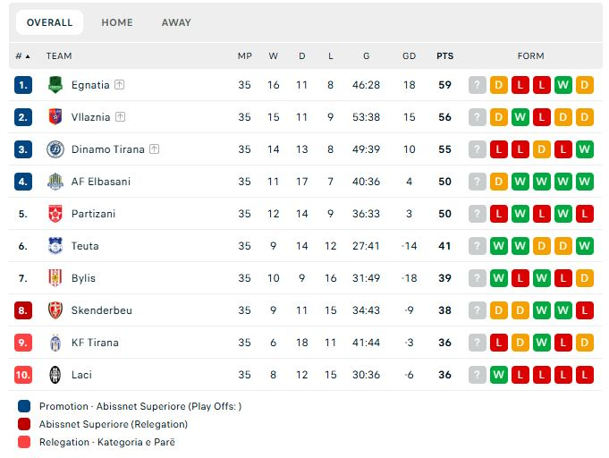 Ndërsa në fund, Laçi ka mbajtur gjallë shpresat dhe do të luajë çdo shans që ka në javën e fundit, ashtu si Tirana, në një garë për të qëndruar në Superiore që tashmë ka vetëm 4 protagonistë.