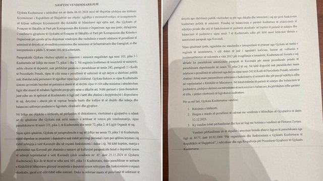 Gjykata Kushtetuese e mbledhur sot në datën 06.02.2026 mori në shqyrtim çështjen me kërkues Kryeministri i Republikës së Shqipërisë me objekt: zgjidhja e mosmarrëveshjes së kompetencës së krijuar ndërmjet Kryeministrit dhe Këshillit të Ministrave nga njëra anë, dhe Gjykatës së Posaçme të Shkallës së Parë për Korrupsionin dhe Krimin e Organizuar, nga ana tjetër; shfuqizimi i vendimeve gjyqësore të Gjykatës së Posaçme të Shkallës së Parë për Korrupsionin dhe Krimin e Organizuar për pjesën që ka disponuar vendosjen dhe vazhdimin e masës ndaluese të pezullimit të ushtrimit të detyrës së zëvendëskryeministres dhe ministres së Infrastrukturës dhe Energjisë, si dhe interpretimin e pikës 3, të nenit 103, të Kushtetutës.